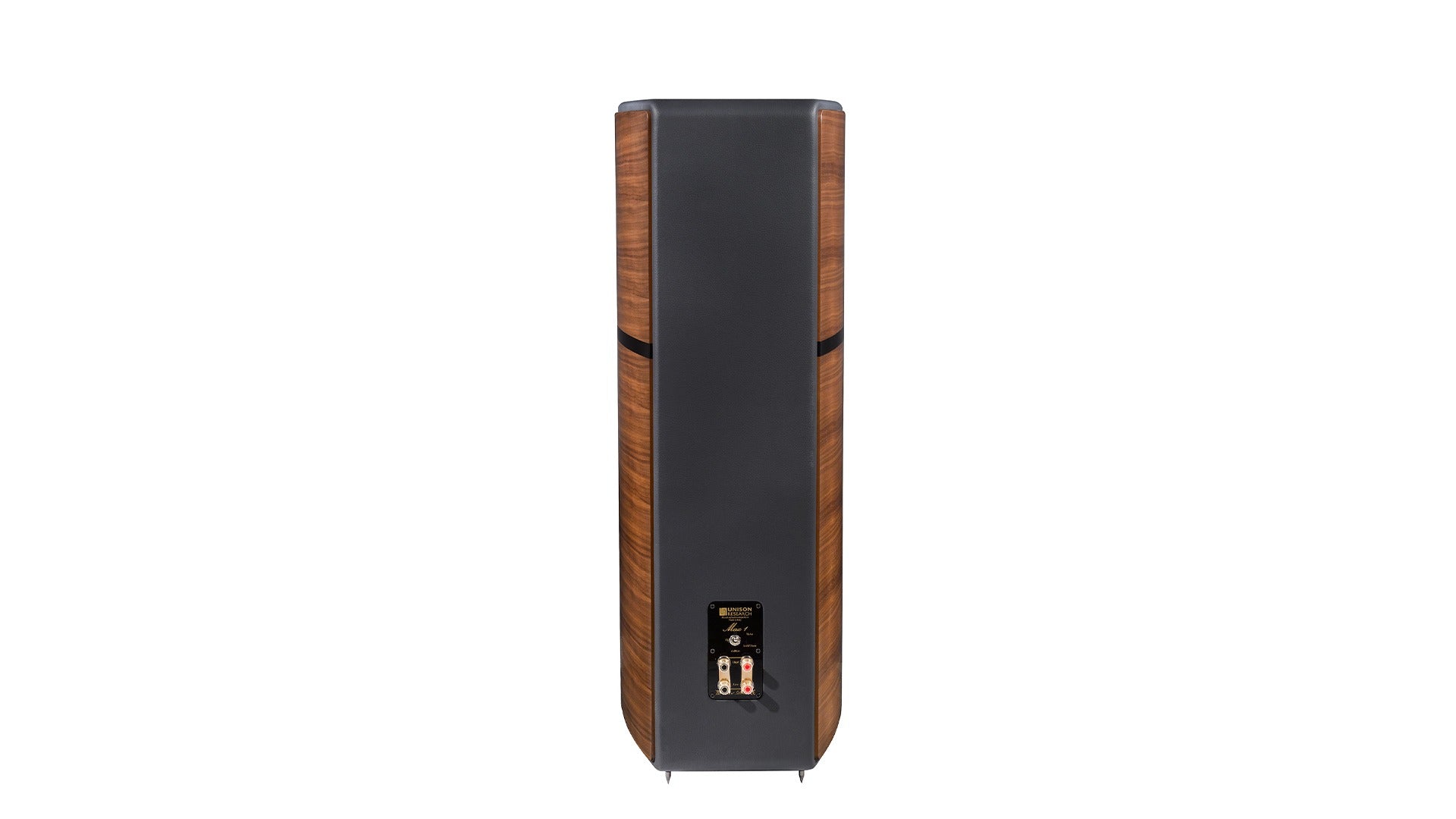 The cabinet is designed to be mounted on height-adjustable spikes. There are four external connectors to allow bi-amping. They are the same high-quality gold-plated brass connectors that are used in the flagship Malibran model. They accept all types of wire terminations, ensuring an electrical contact that is mechanically safe and effective.
